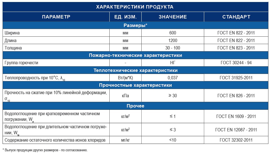 Толщина: 30-100 мм