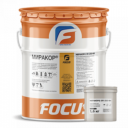 МИРАКОР ЭП-250-ФН антикоррозийная эпоксидная грунт-эмаль с «железной слюдкой». Высокоэффективная двухкомпонентная эпоксидная грунт-эмаль для защиты металлических поверхностей. Покрытие стойкое в пресной и морской воде, в водных растворах солей, кислот и щелочей, в нефти и нефтепродуктах. Создает на поверхности темно-серое бесшовное покрытие с отличной адгезией.