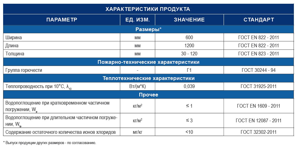 Толщина: 30-120 мм