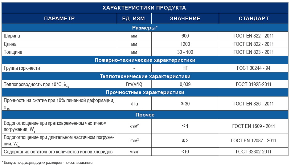 Толщина: 30-100 мм