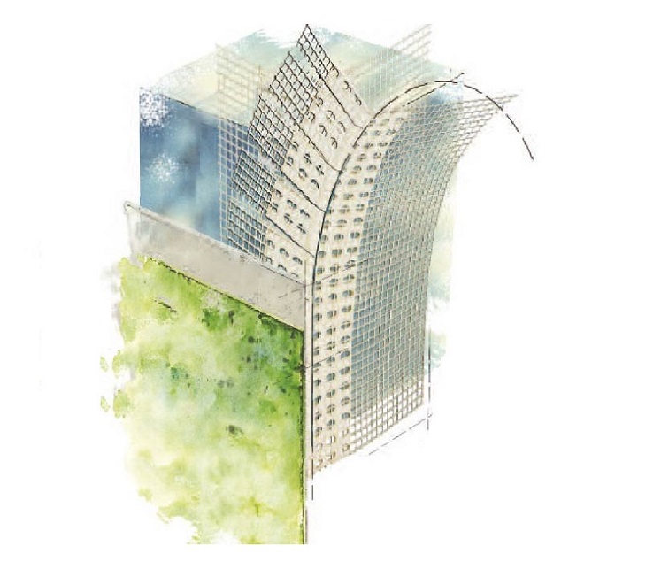 Предназначен для усиления не прямомолинейных внешних или внутренних угловых поверхностей (сопряжений). Отличается гибкостью и наличием сетки для заделки в штукатурный слой.