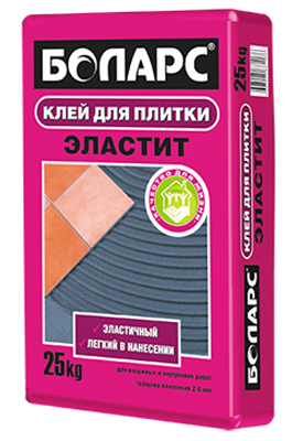 БОЛАРС ЭЛАСТИТ предназначен для крепления всех видов кафельной, керамической, мозаичной плитки, для облицовки вертикальных и горизонтальных оснований керамо-гранитными и каменными плитами (при облицовке стен плиты размером не более 300х300 мм, при укладке на пол не более 450х450 мм), внутри и снаружи зданий в гражданском и промышленном строительстве. Рекомендован для использования в системах «теплый пол». Наносится ручным способом на бетонные, кирпичные, газобетонные, оштукатуренные поверхности.